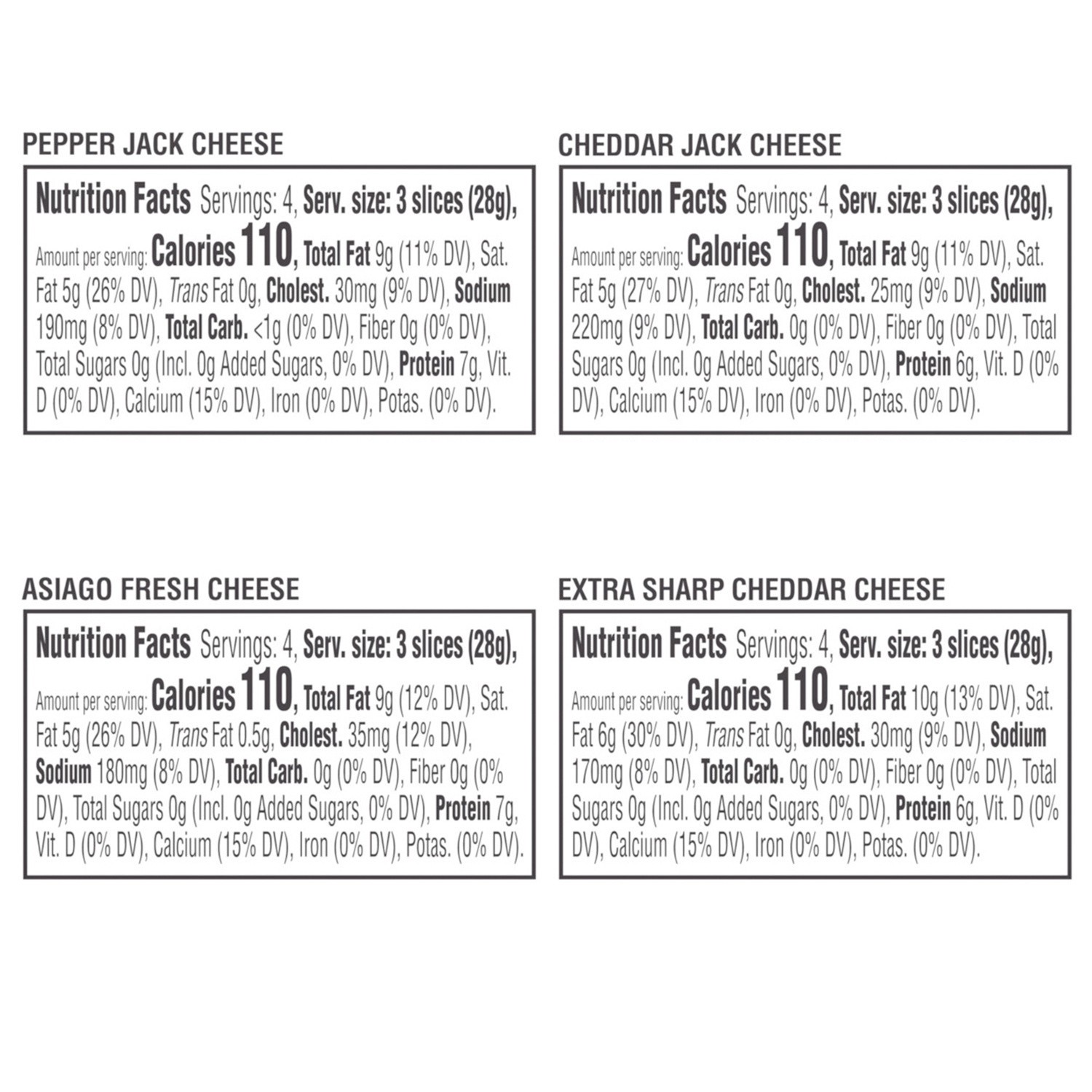 Cracker Barrel Cracker Cuts Variety Cheese Slice Pack serves up four varieties of delicious, flavorful cheeses in one convenient package. Featuring pepper jack, cheddar jack, Asiago and extra sharp ch…