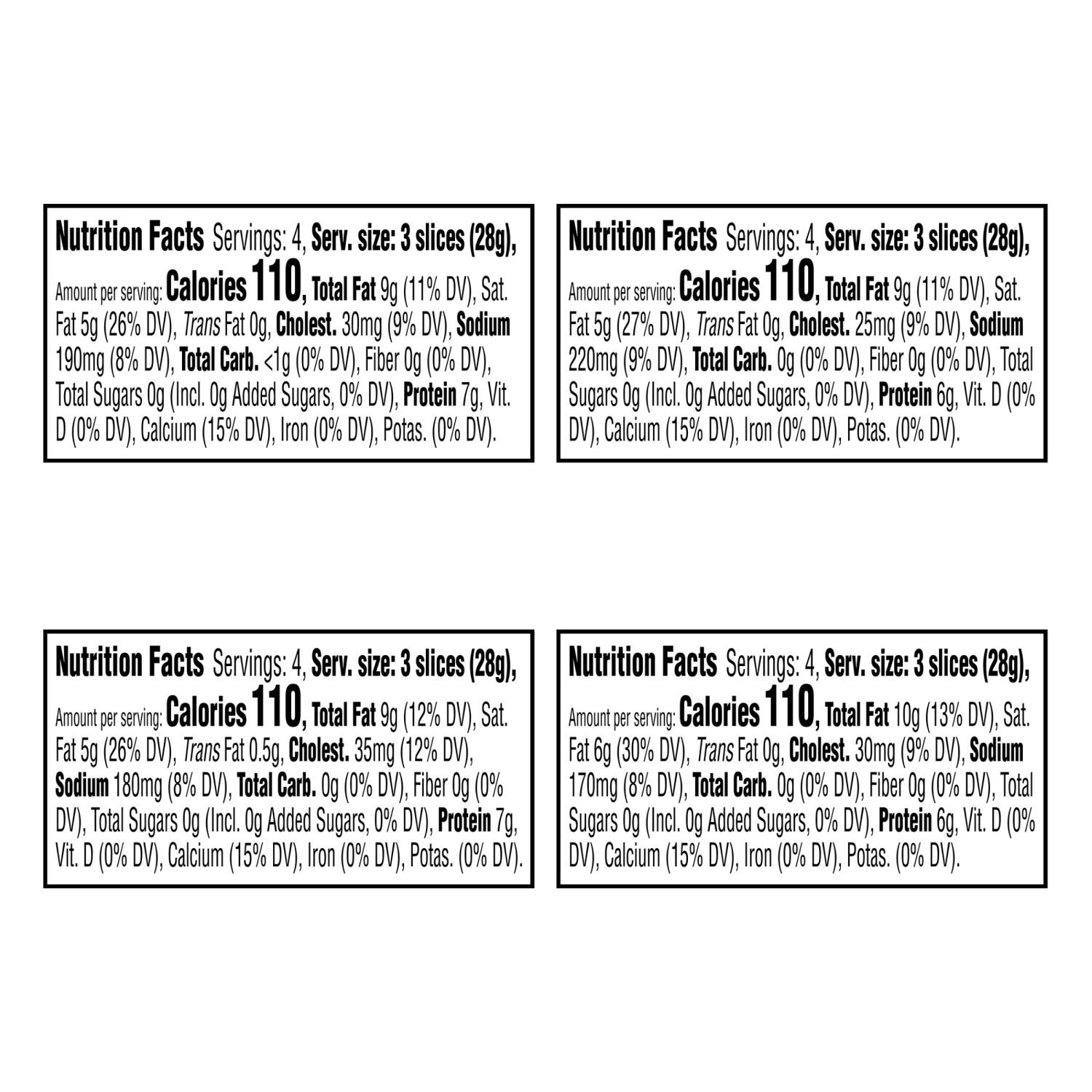 Pepper Jack Cheese: Pasteurized Milk, Jalapeno Peppers, Cheese Culture, Salt, Enzymes. Cheddar Jack Cheese: Pasteurized Milk, Cheese Culture, Salt, Enzymes, Annatto (Color). Asiago Fresh Cheese: Paste…