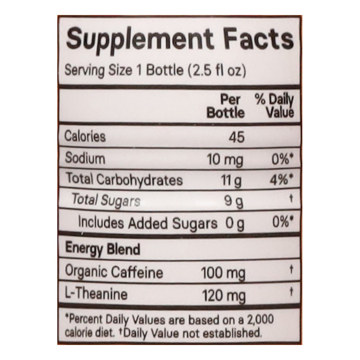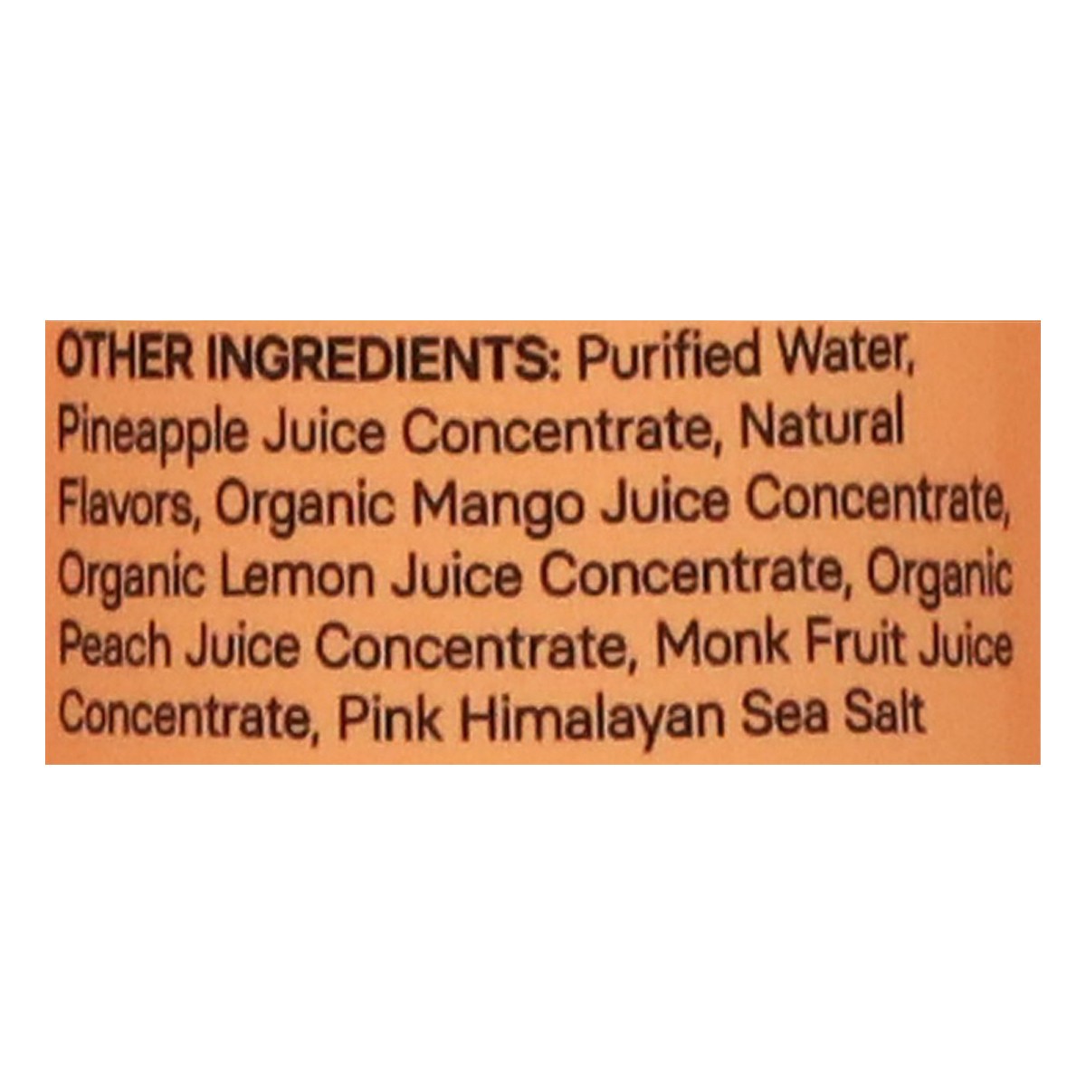Energy Blend: Organic Caffeine, L-Theanine. Other Ingredients: Purified Water, Pineapple Juice Concentrate, Natural Flavors, Organic Mango Juice Concentrate, Organic Lemon Juice Concentrate, Organic P…