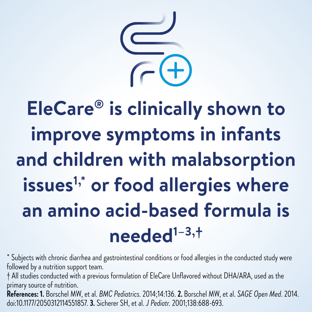 EleCare is a hypoallergenic and nutritionally complete amino acid-based infant formula for the dietary management of protein maldigestion, malabsorption, food allergies, short bowel syndrome, eosinoph…
