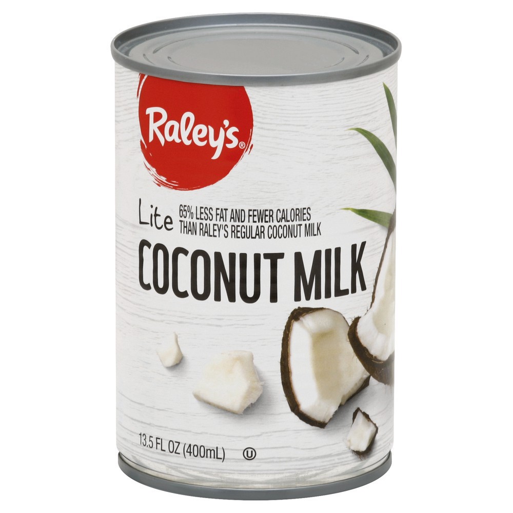 65% less fat and fewer calories than raley's regular coconut milk. Raley's lite coconut milk - 35 calories, 3.5 g fat per serving; Raley's regular coconut milk - 100 calories, 11 g fat per serving. Go…