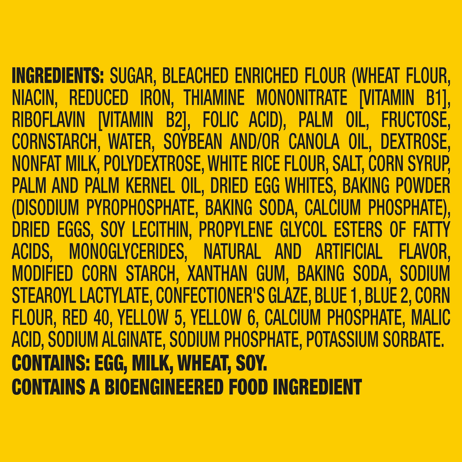 Sugar, Bleached Enriched Flour (Wheat Flour, Niacin, Reduced Iron, Thiamine Mononitrate [Vitamin B1], Riboflavin [Vitamin B2], Folic Acid), Palm Oil, Fructose, Cornstarch, Water, Soybean and/or Canola…
