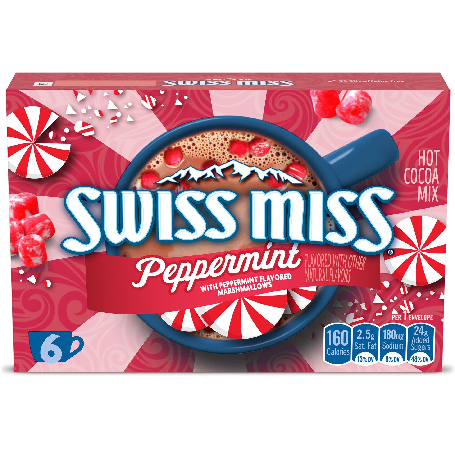 Merry Swiss Miss! Enjoy the festive taste of Swiss Miss Peppermint this holiday season. This hot cocoa drink mix transforms into a rich and creamy peppermint hot cocoa with peppermint flavored marshma…