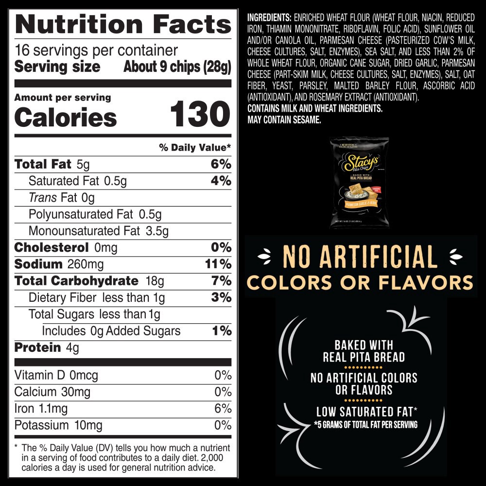 Stacy's Pita Chips, Parmesan Garlic & Herb, Baked, Sharing Size