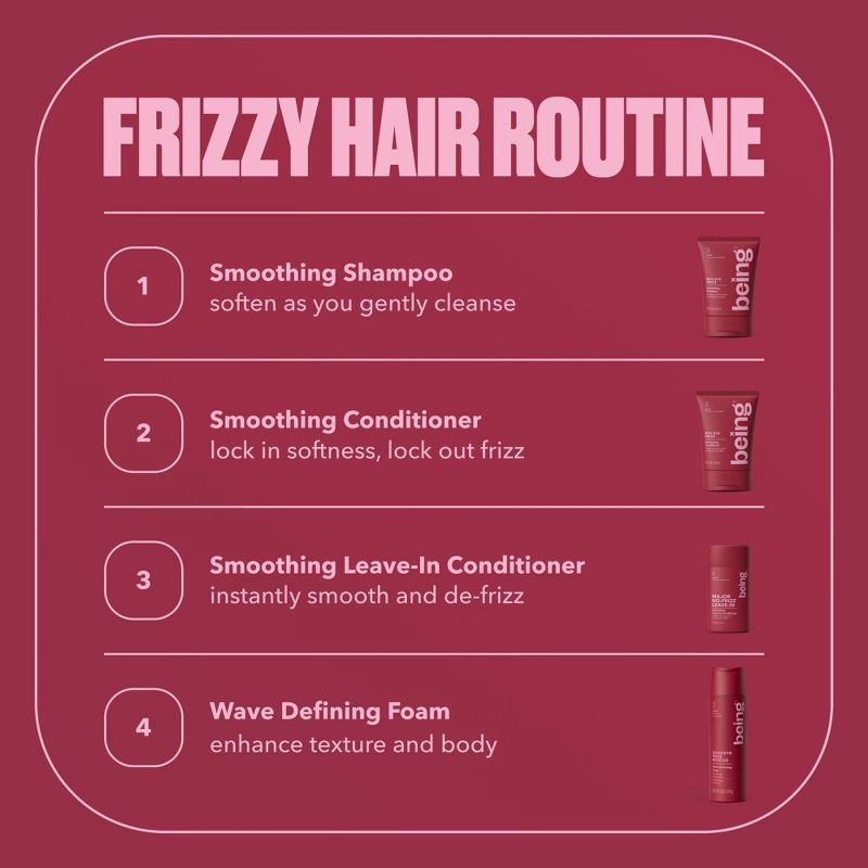 Being Haircare's GOODBYE FRIZZ MOUSSE Wave Defining Foam is a lightweight styling mousse that smooths frizz, enhances natural texture, and boosts body—without stiffness or stickiness. This airy, wave-…