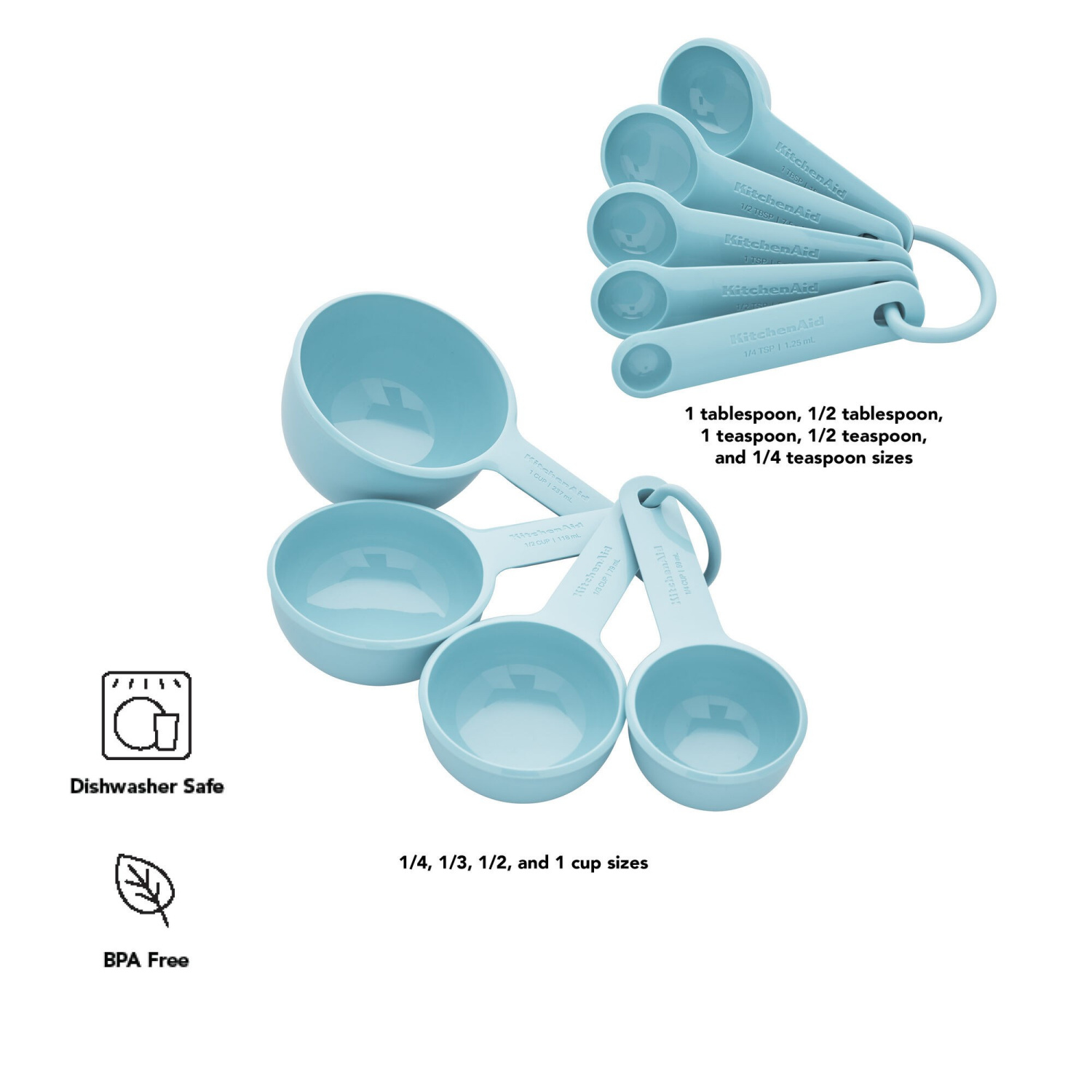 This KitchenAid 9-Piece Measuring Set includes essential tools you need to measure both wet and dry ingredients. Soft grips under the handles maximize comfort and control while using, and the measurem…