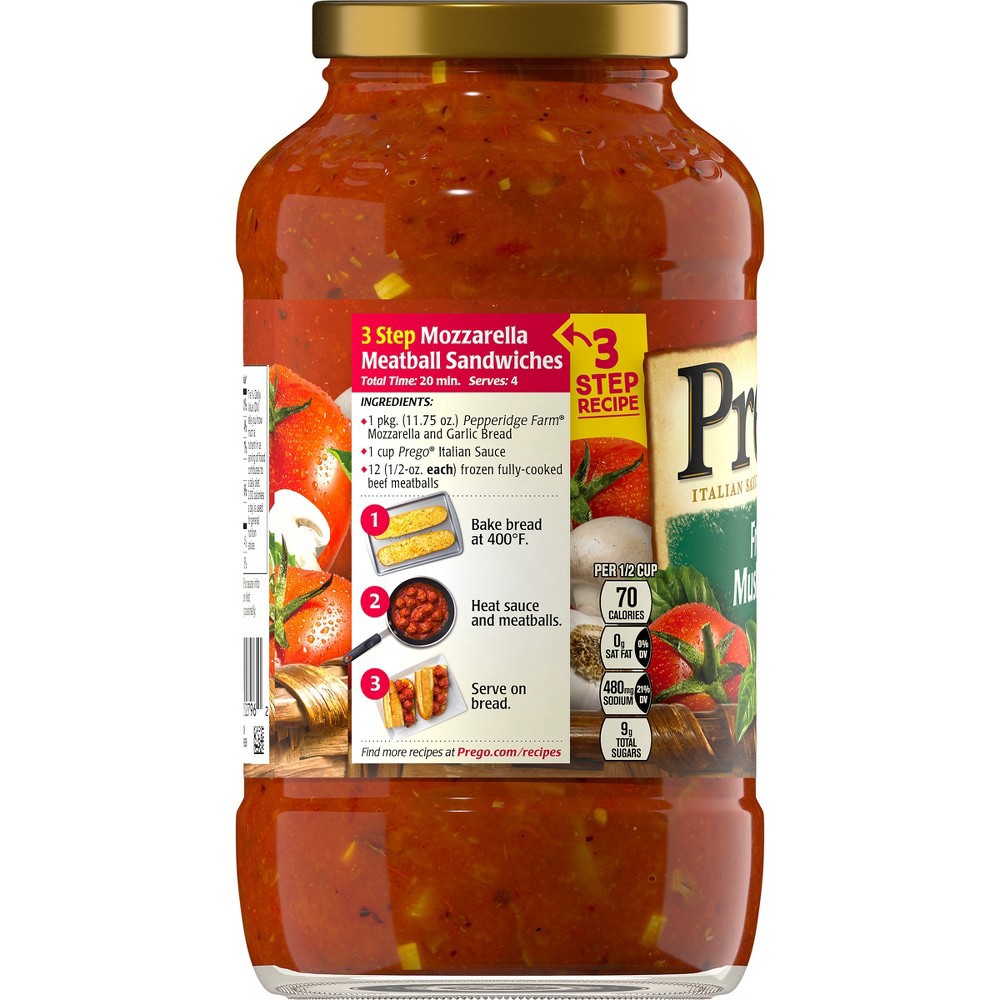 Be the hero at dinner with Prego Mushroom Pasta Sauce. Versatile and delicious, this classic red sauce features the bold flavors of vine-ripened tomatoes balanced with savory mushrooms. This pasta sau…