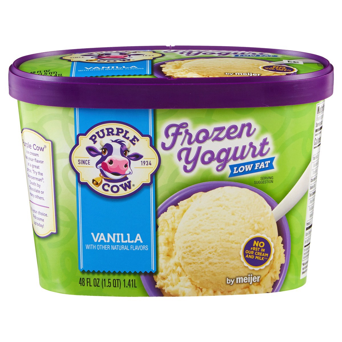 Indulge in the creaminess of ice cream without the guilt with Purple Cow Vanilla Frozen Yogurt. Whether you eat it on a cone or on a warm cookie, your tastebuds will thank you for this low-fat and del…