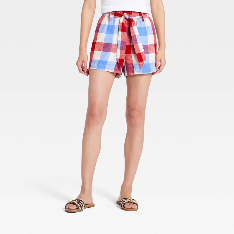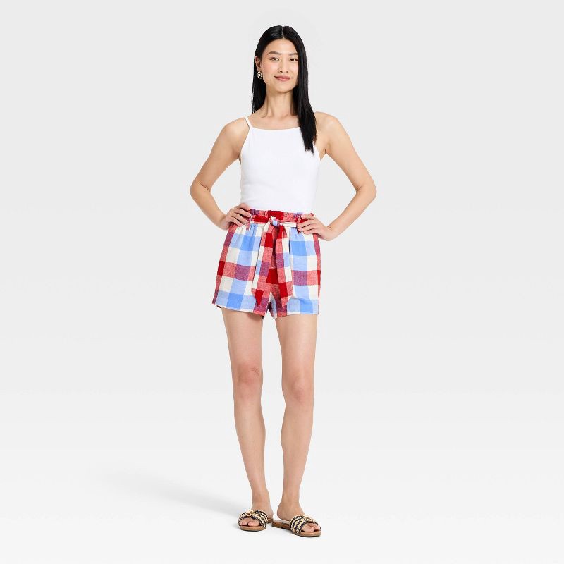 Women's High-Rise Linen Paper Bag Shorts - A New Day™ Red S