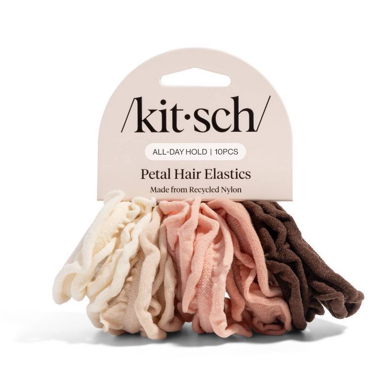 Kitsch Recycled Fabric Petal Hair Elastics Set - 10pc - Blush: Securing Hair, All Hair Types, Recycled Nylon