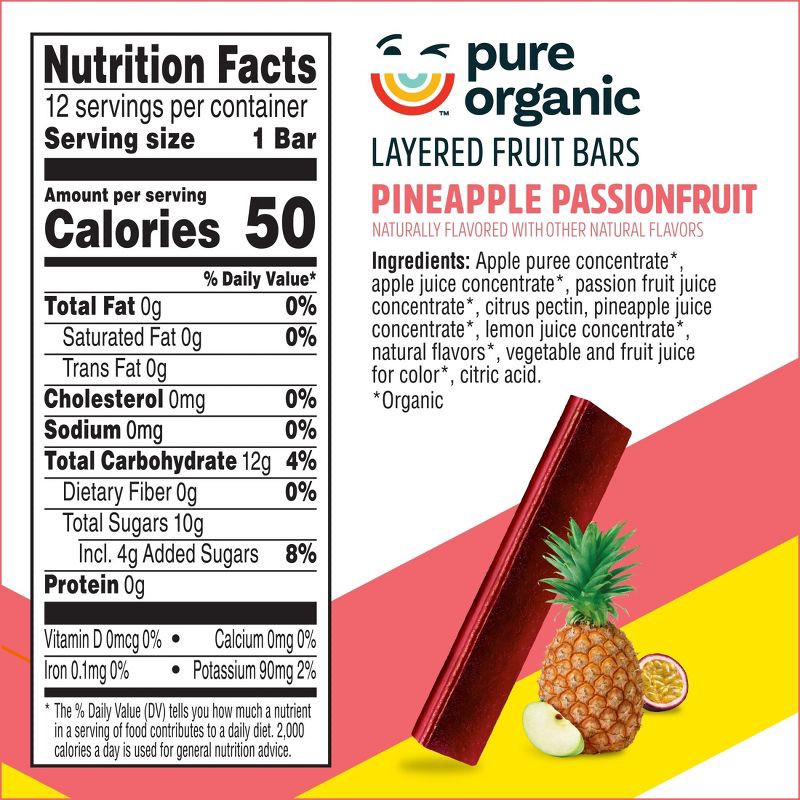 - Satisfy your sweet tooth with Pure Organic Pineapple Passionfruit layered fruit bars, a fruit snack made with no high fructose corn syrup