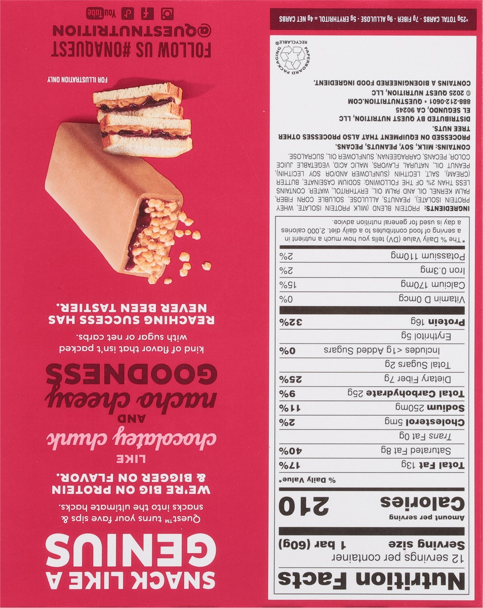 Quest Crispy Peanut Butter & Jelly Flavored Protein Bar - 12 x 2.12 oz
