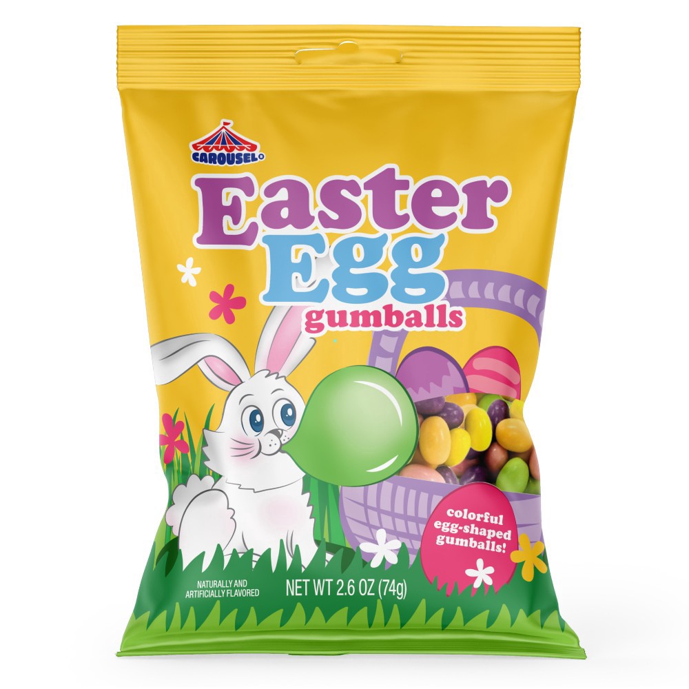 Each bag contains 2.6oz of large, colorful egg-shaped gumball! Each Tray contains 12 individual pouches of bubble gum fun! Tray to merchandise on store shelves or pouch is peggable. Perfect addition a…