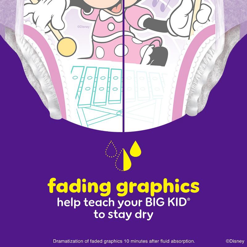 - Pull-Ups feature Minnie Mouse graphics that fade when wet so parents know when it's time for a change