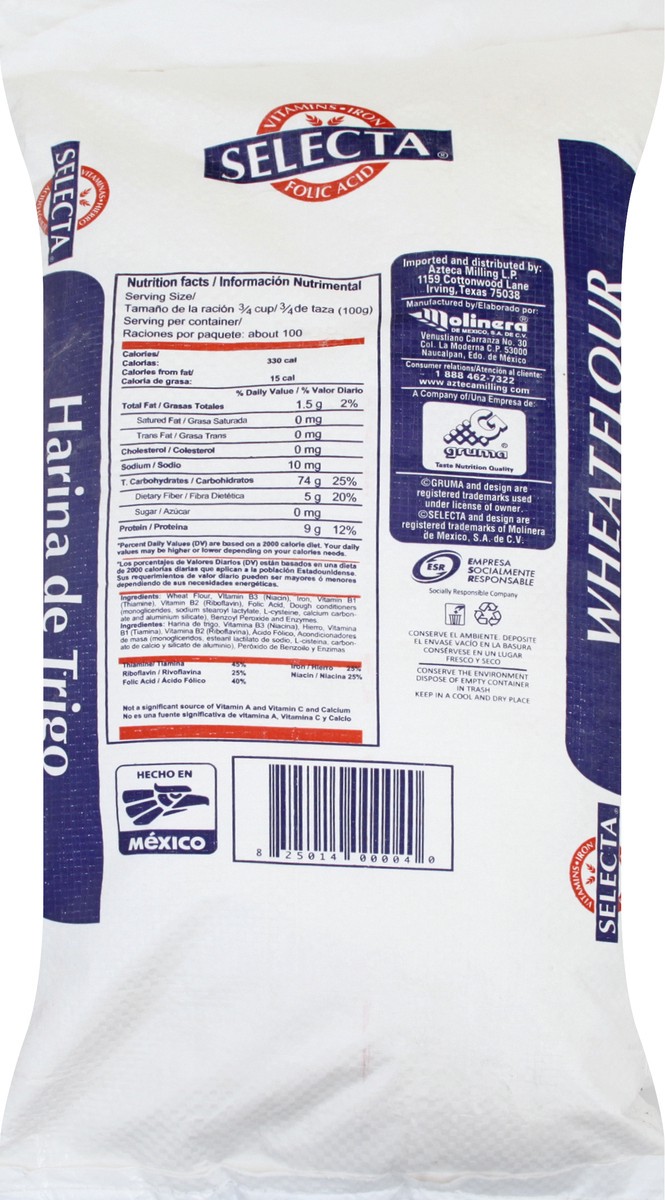 New. Vitamin. Iron. Folic acid. Socially Responsible Company. www.aztecamilling.com. Consumer relations 1 888 462-7322. www.aztecamilling.com. Conserve the environment dispose of empty container in tr…