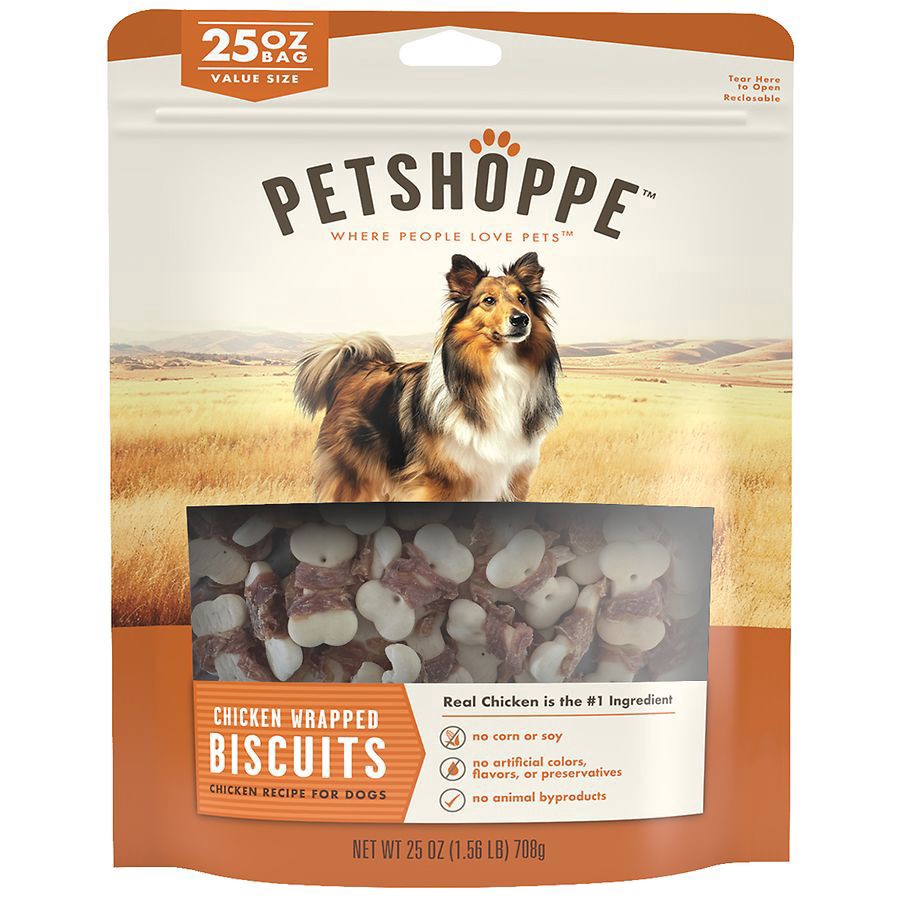 Pet Shoppe Chicken Wrapped Biscuits 25 oz. Your dog deserves tasty, Pet Shoppe Chicken Wrapped Biscuits. Real meat is the 1 ingredient. , No soy or corn , No artificial colors or flavors , No animal …