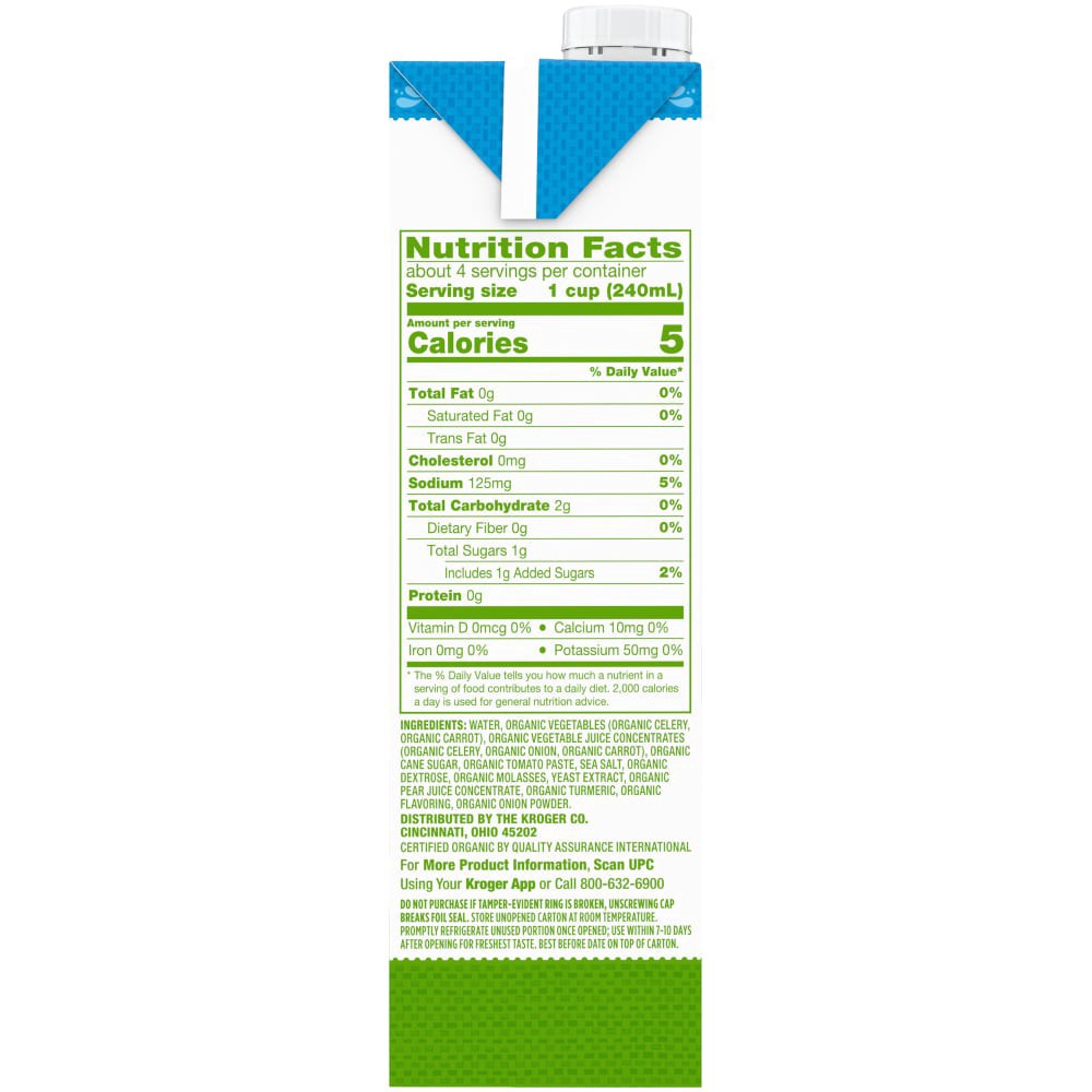 Water, organic vegetables (organic celery, organic carrot), organic vegetable juice concentrates (organic celeriac, organiconion, organic carrot), organic cane sugar, organic tomato paste, sea salt, o…