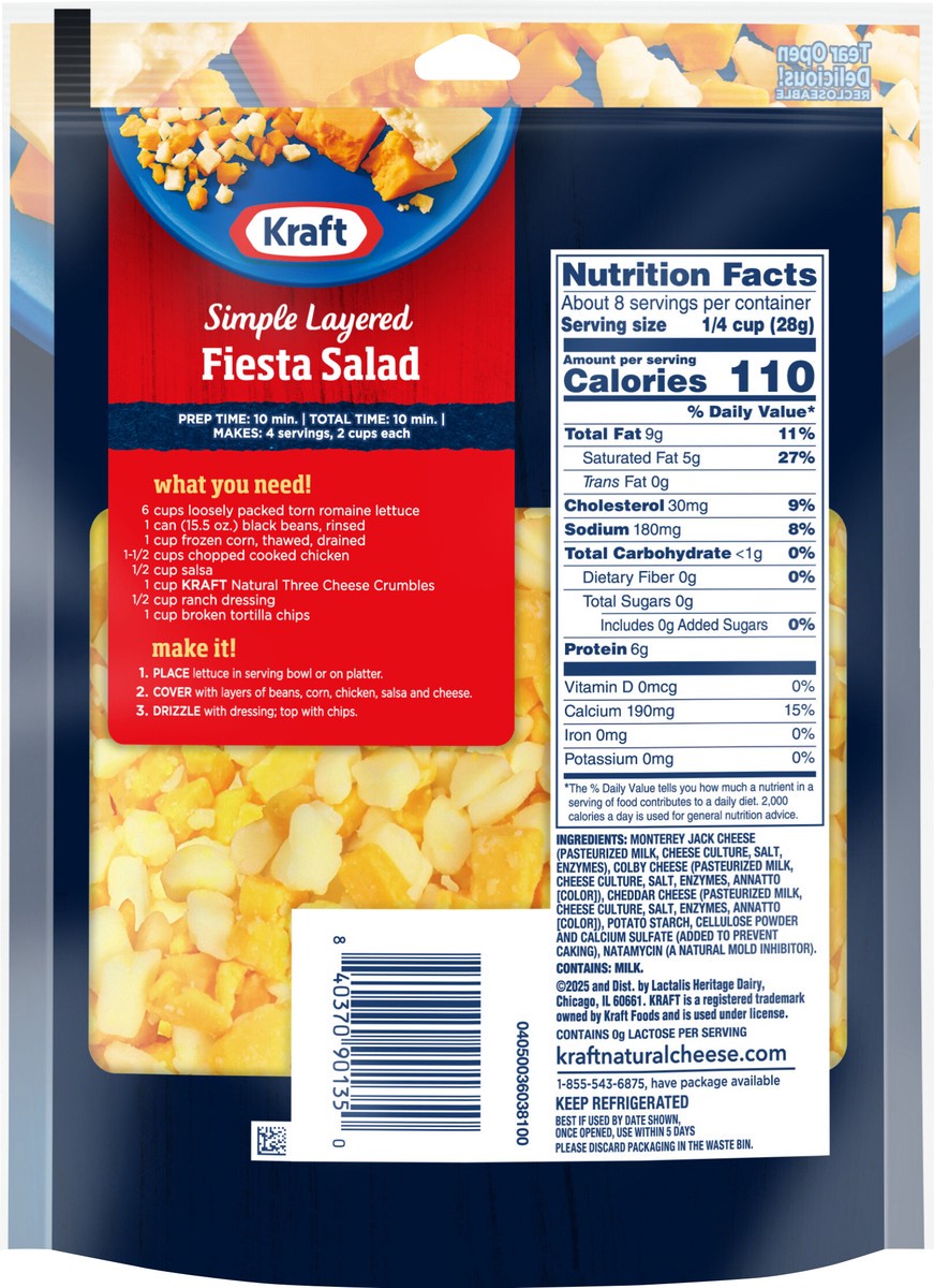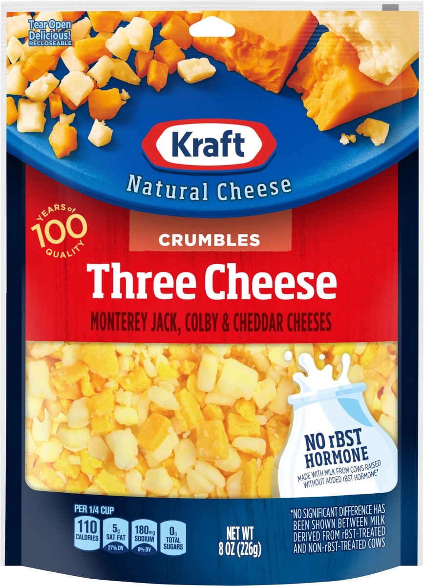 Kraft Three Cheese Cheese Crumbles, 8 oz Bag