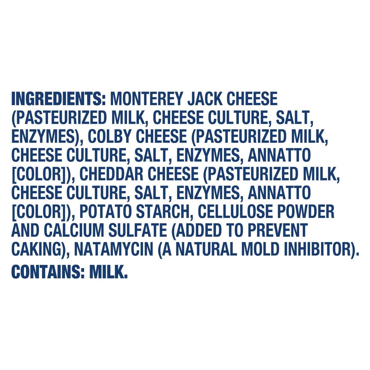 Monterey Jack Cheese (Pasteurized Milk, Cheese Culture, Salt, Enzymes), Colby Cheese (Pasteurized Milk, Cheese Culture, Salt, Enzymes, Annatto [Color]), Cheddar Cheese (Pasteurized Milk, Cheese Cultur…
