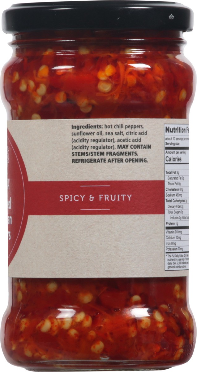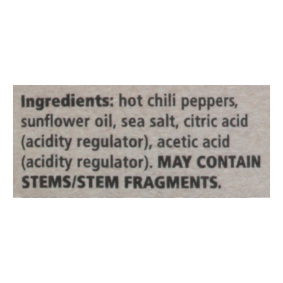 Hot Chili Peppers, Sunflower Oil, Sea Salt, Citric Acid (Acidity Regulator), Acetic Acid (Acidity Regulator).