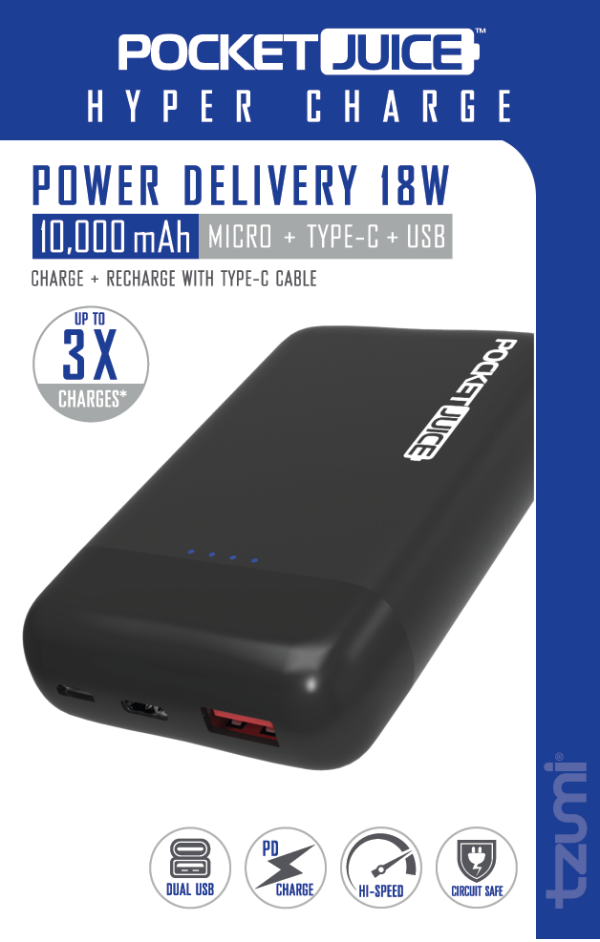 With the Pocket Juice 10,000 mAhPortable Charger you can take all your devices on the go and keep them fully charged all day long. Despite being compact and lightweight, this external battery power ba…