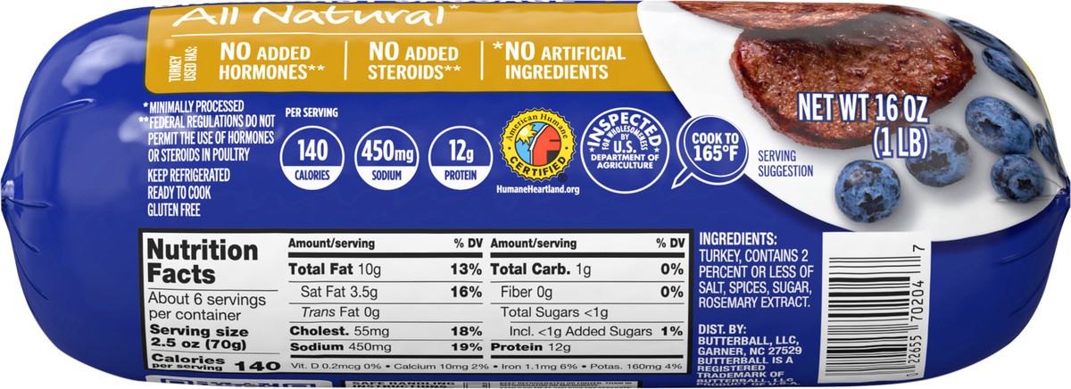 - Includes one 16 oz. Butterball All Natural Fresh Turkey Breakfast Sausage Roll