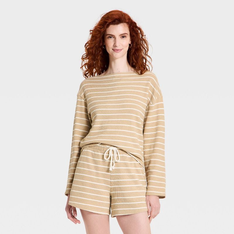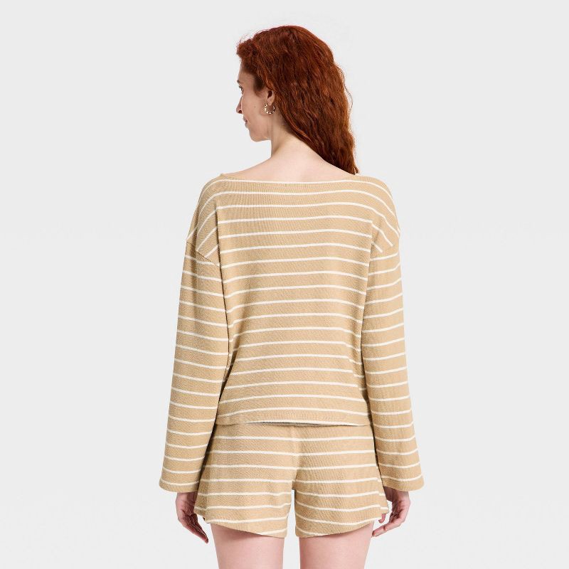 Women's Long Sleeve Boat Neck T-Shirt - Universal Thread™ Tan Striped XL