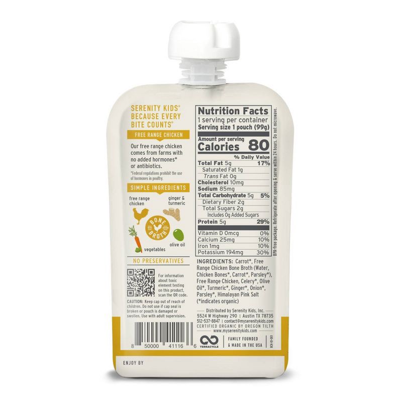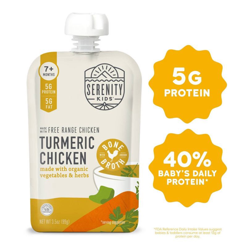 Serenity Kids Turmeric Chicken with Organic Vegetables, Herbs & Bone Broth Baby Food Pouch - 3.5oz: Age 6 Months+, Gluten-Free, No Added Sugar