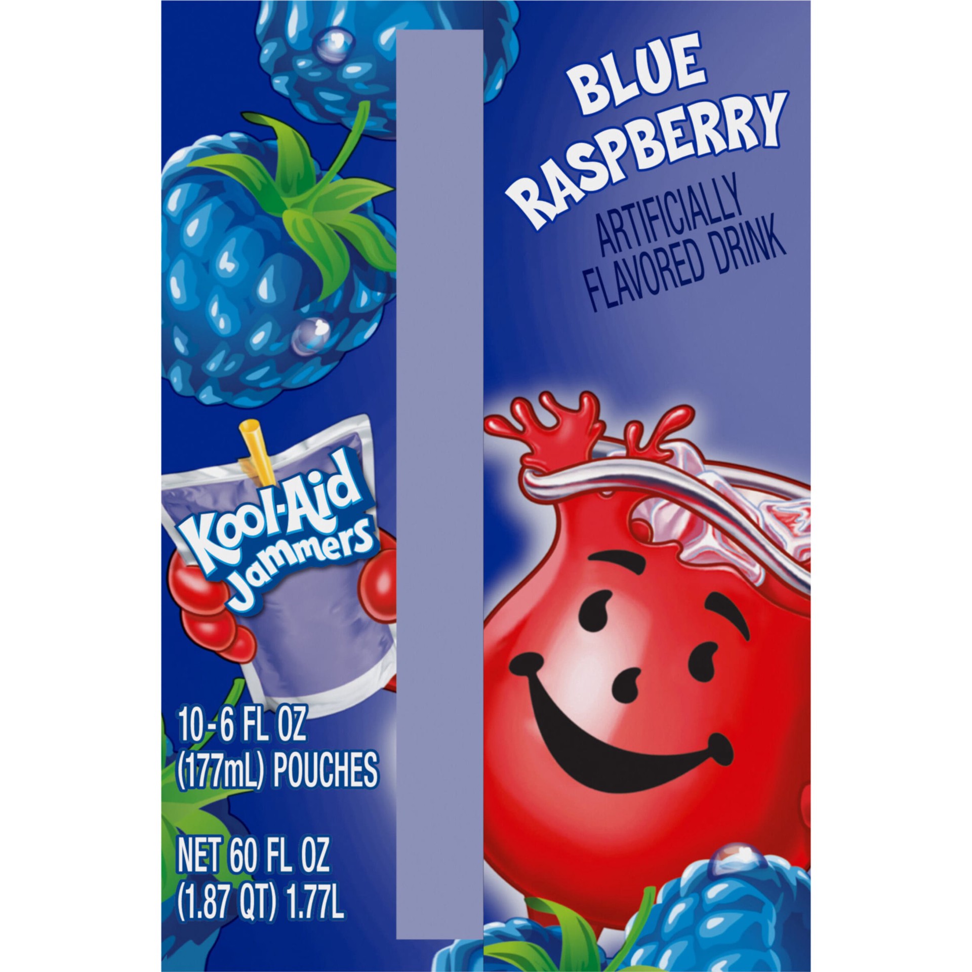 Kool-Aid Jammers Artificially Flavored Blue Raspberry Drink Pouches deliver fun with a sweet blend of raspberry flavor. Our delicious kids drink contains 75% less sugar than leading regular sodas (per…