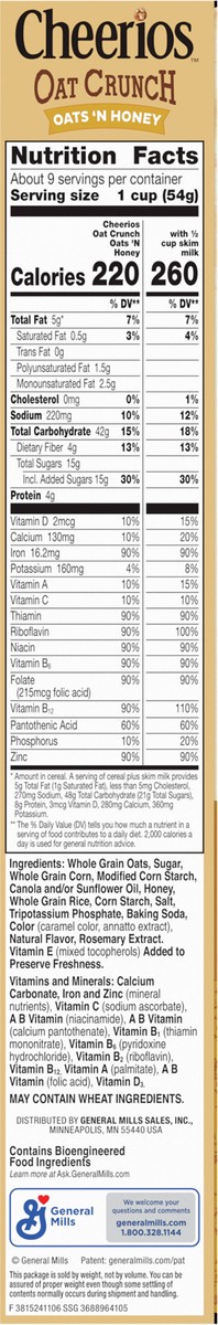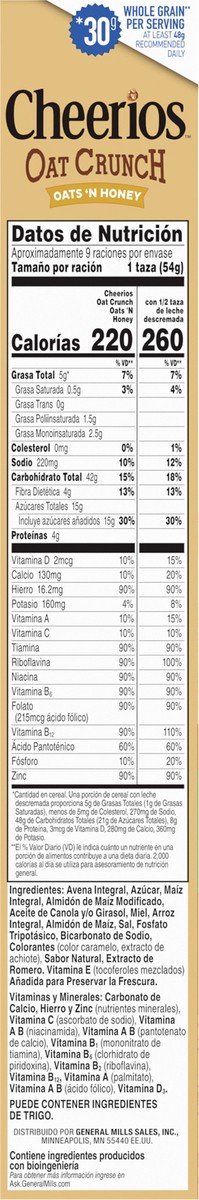 Oats on Os! Start your day with the irresistible crunch of Cheerios Oat Crunch Oats and Honey breakfast cereal. This sweetened multigrain cereal is made with whole grain oats and topped with real hone…