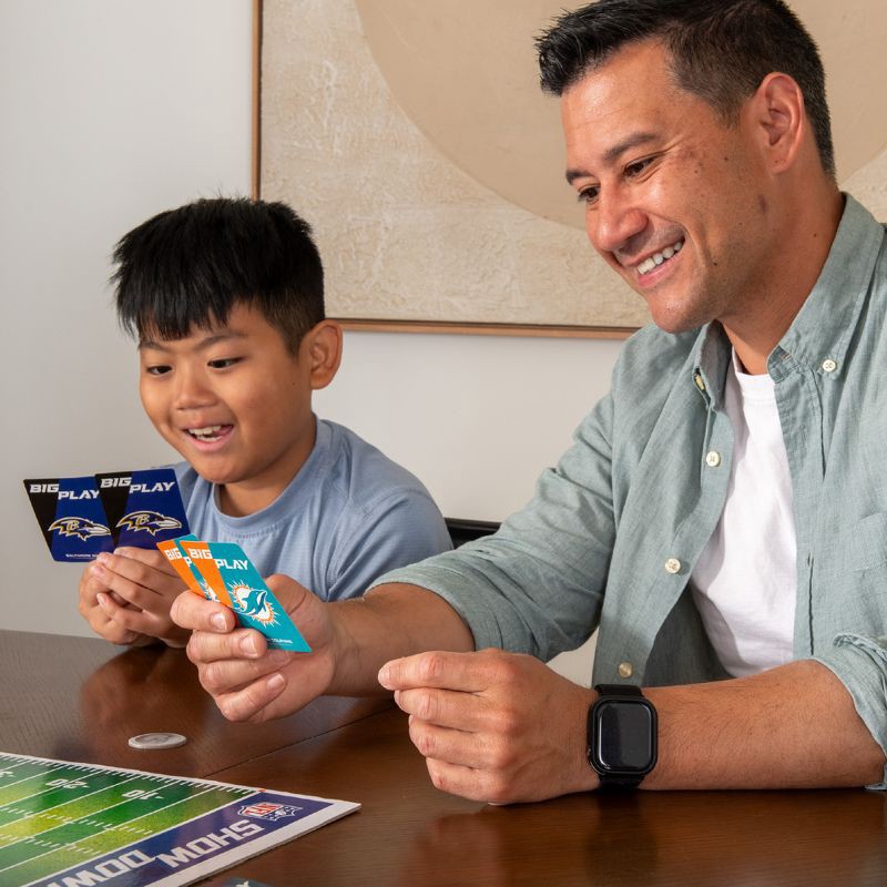 - HEAD-TO-HEAD NFL ACTION: Call the plays and outsmart your opponent! One player is on offense, and the other is on defense. Strategically choose your plays, flip the cards, and see if you can outmaneuver your opponent to gain yards and fight for ultimate victory!