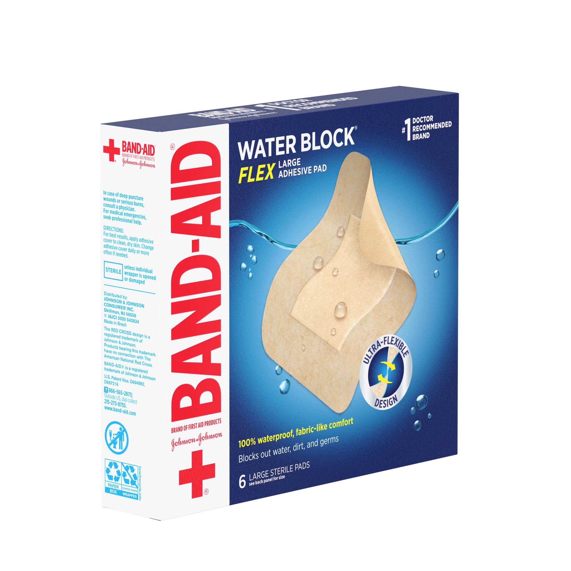 Cover minor cuts, scrapes, and wounds and block out water, dirt, and germs that may cause infection with Band-Aid Brand of First Aid Products Water Block Flex, Large Adhesive Pads. Great for larger wo…