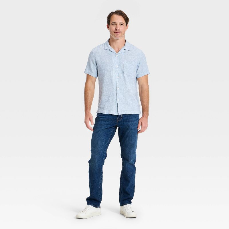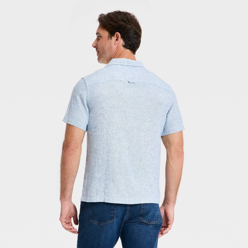 Men's Short Sleeve Linen Blend Camp Collar Button-Down Shirt - Goodfellow & Co™ Light Blue XL