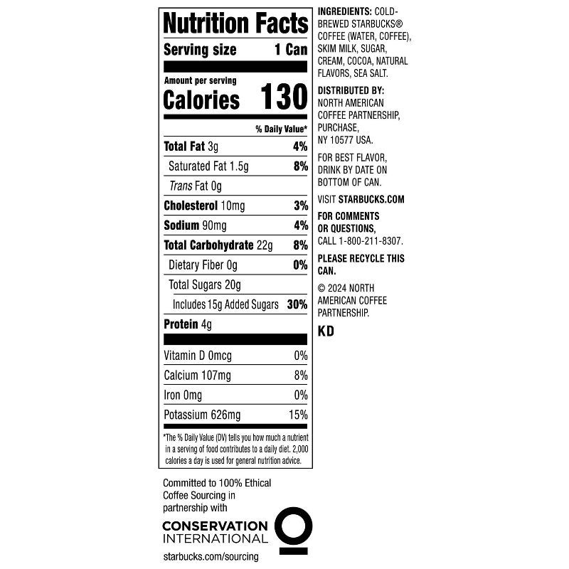 Cold-Brewed Starbucks Coffee (Water, Coffee), Skim Milk, Sugar, Cream, Cocoa, Natural Flavors, Sea Salt.