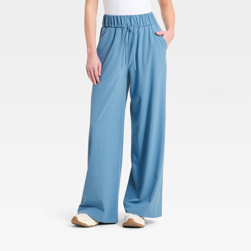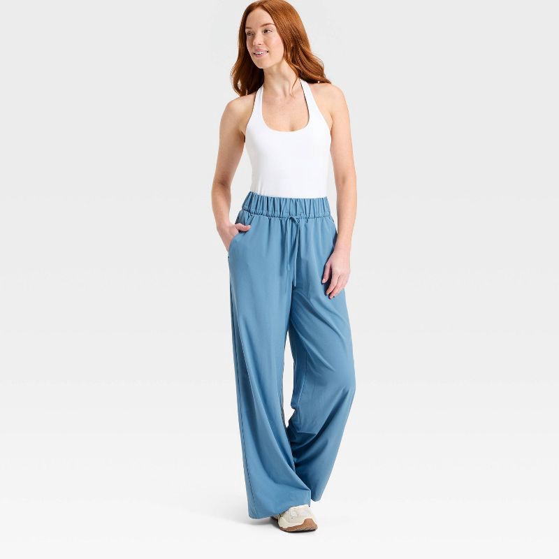 Women's Active Light High-Rise Pocketed Wide Leg Pants - All In Motion™ Steel Blue M