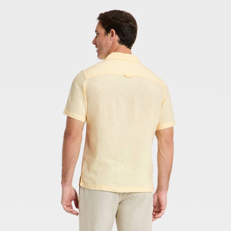 Men's Short Sleeve Linen Blend Camp Collar Button-Down Shirt - Goodfellow & Co™ Yellow L