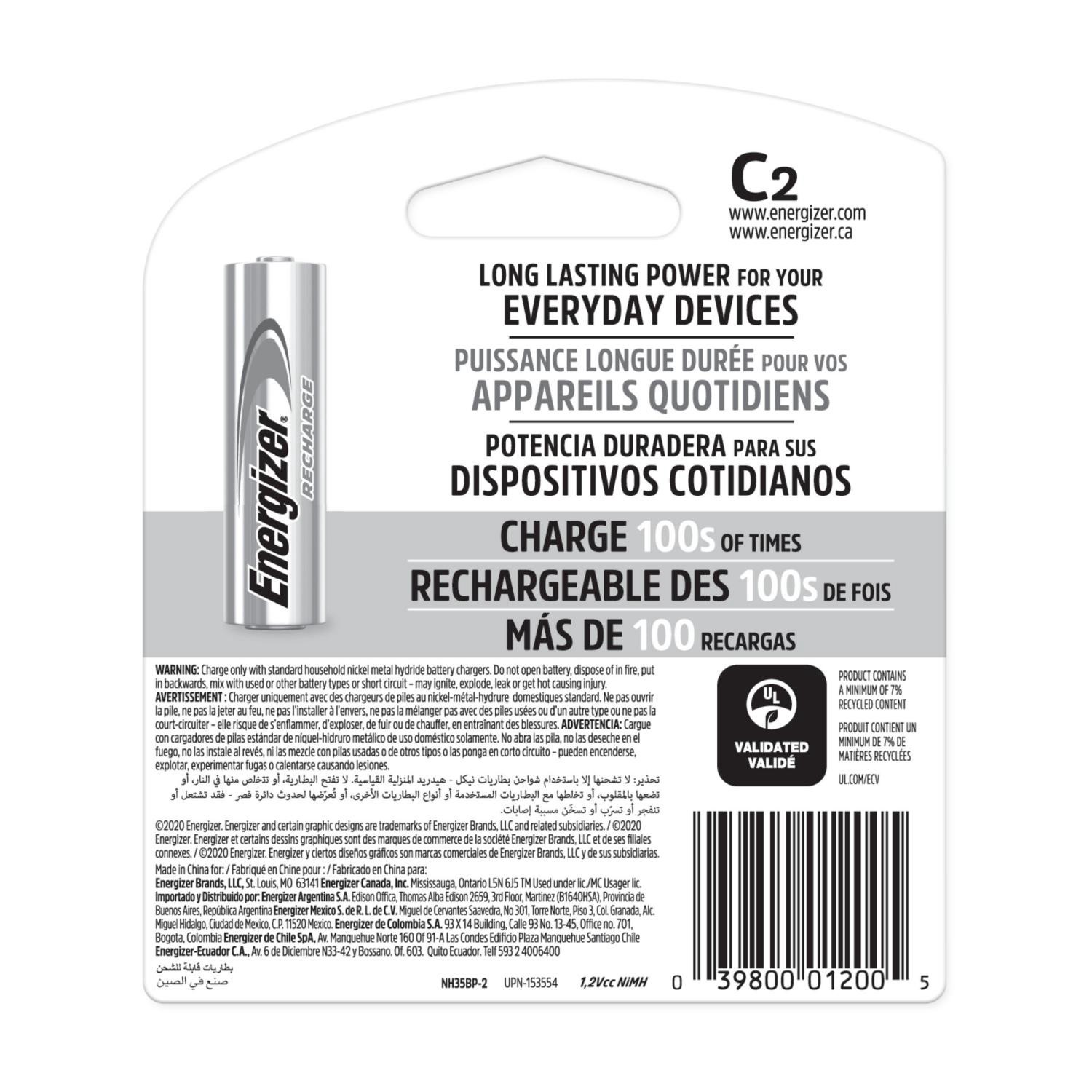 Energizer Recharge C Rechargeable Batteries 2-Pack