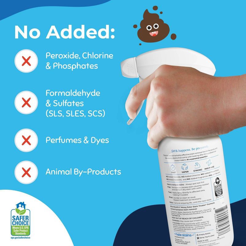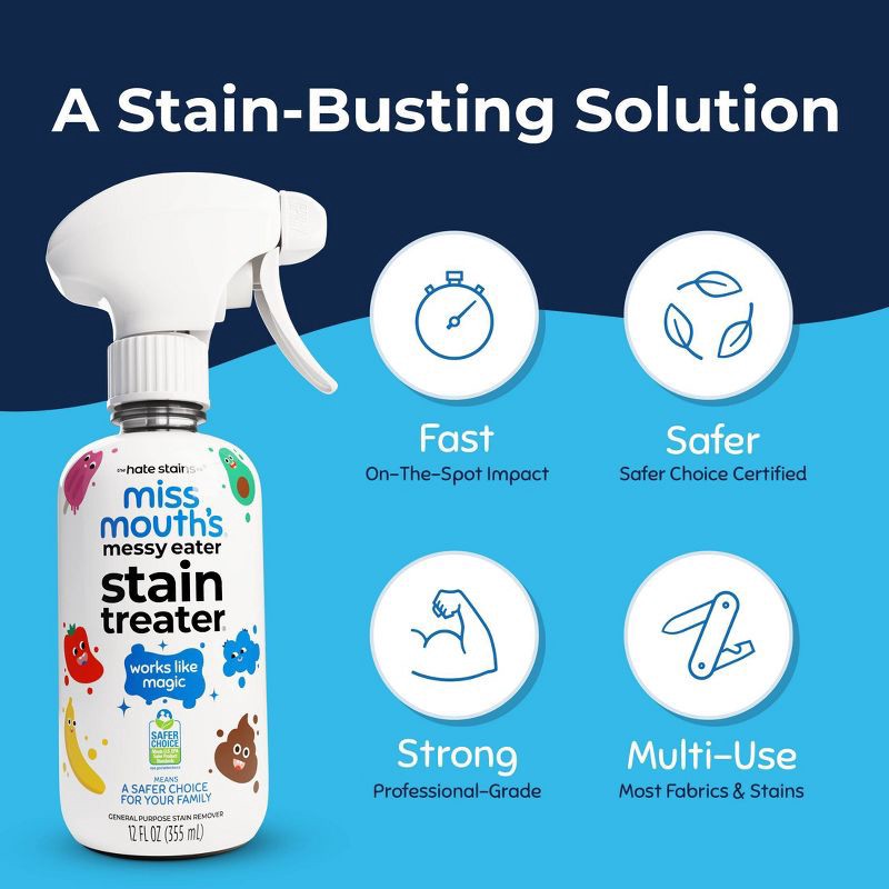 - A PARENTAL ESSENTIAL: Our 12 oz bottle of Miss Mouth's Messy Eater Stain treater is ideal for busy laundry rooms.