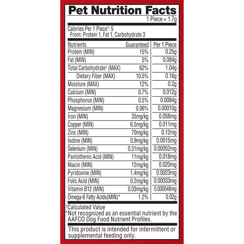 - WHOLESOME DOG TREATS WITH 15% PROTEIN: Five calories per treat and contains 12 vitamins and minerals, like iron, zinc and vitamin B12
