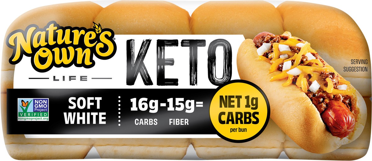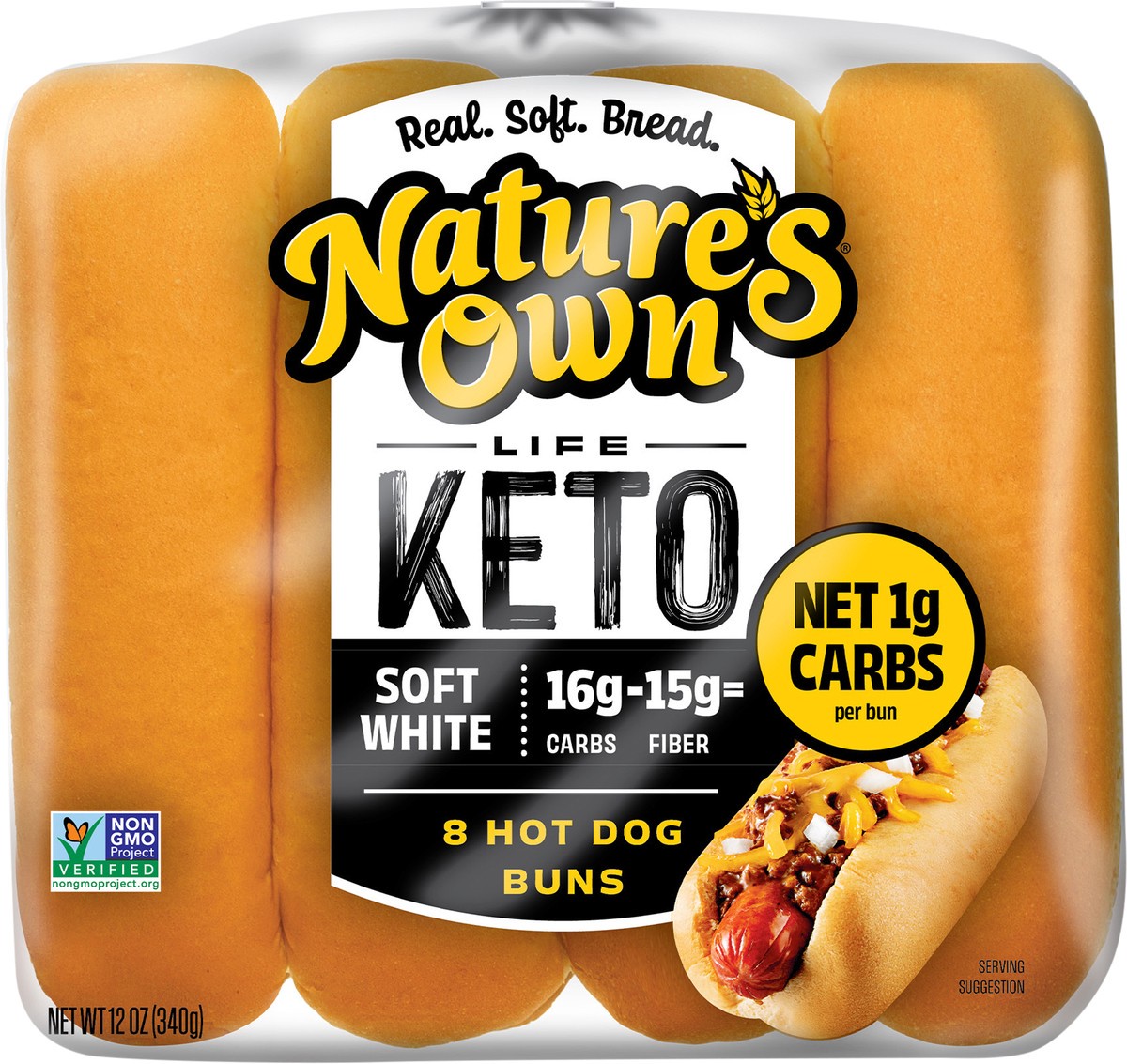 Nature''s Own Life Keto Soft White Hotdog Buns, Keto Hotdog Buns, Keto Bread Buns, 8 Count