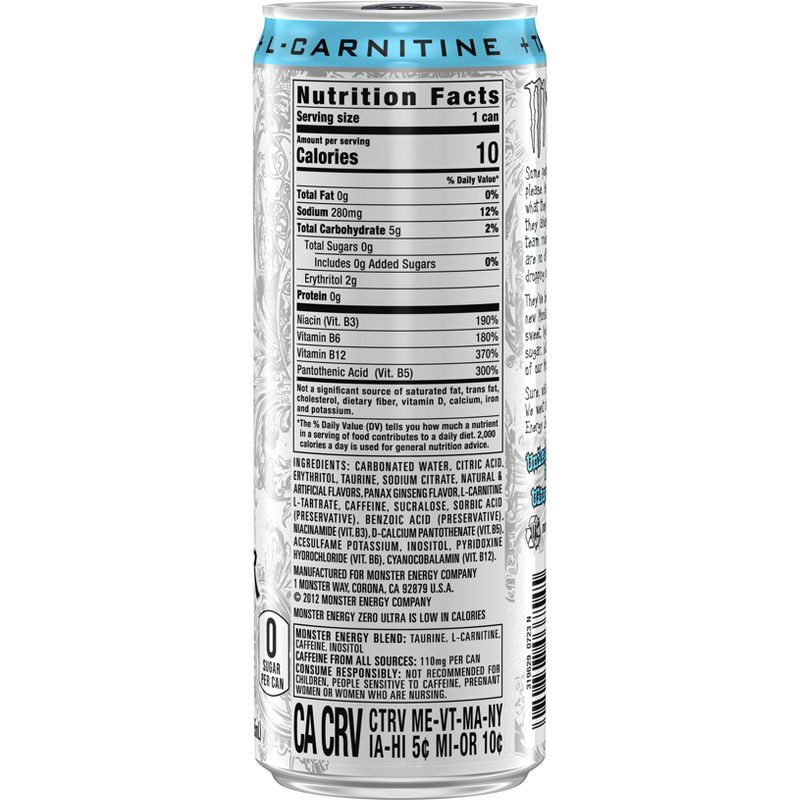 - FULL FLAVOR, ZERO SUGAR: Zero Ultra has 10 calories and zero sugar, but with all the flavor you're accustomed to and packed with our sugar-free Monster Energy blend, making it an ideal energy drink choice.