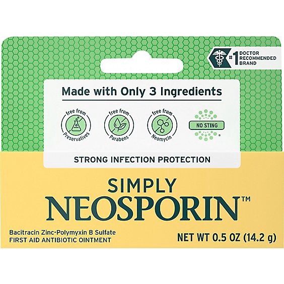 Simply Neosporin Formula First Aid Antibiotic Ointment helps prevent infection in minor cuts, scrapes, and burns. With three ingredients, including first aid antibiotics bacitracin zinc and polymyxin …