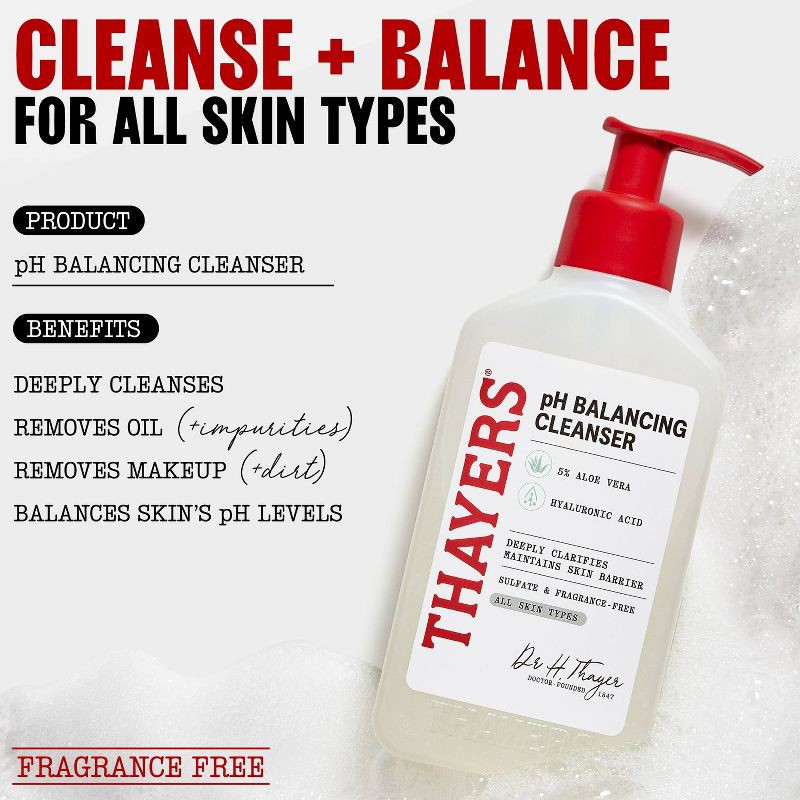 - Gentle Face Wash: Thayers pH Balancing facial cleanser gently yet deeply cleanses to remove makeup, dirt, oil, and impurities; This jelly to foam face cleanser leaves skin feeling deeply cleansed, soft, and smooth