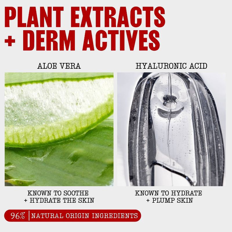 - 96% Natural Origin Ingredients: Formulated with 5% filet of aloe vera and sodium hyaluronate to balance and hydrate as it cleanses without stripping skin; we fuse natural plant ingredients with derm actives for real results to improve overall skin quality