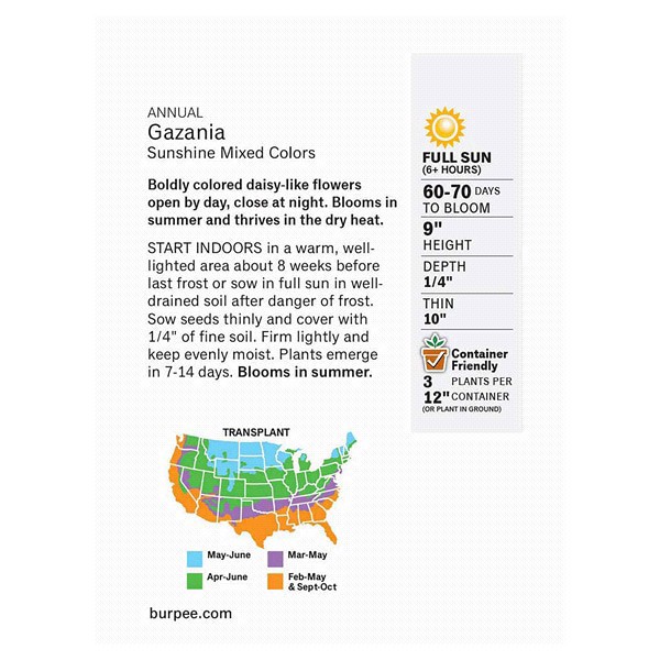 slide 1 of 5, Burpee Gazania Sunshine Mix Seeds, 1 ct