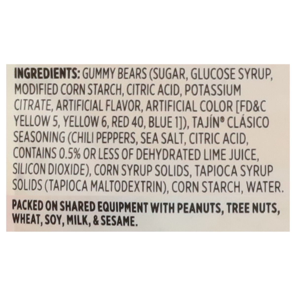 Gummy Bears (Sugar, Glucose Syrup, Modified Corn Starch, Citric Acid, Potassium Citrate, Artificial Flavor, Artificial Color [FD&C Yellow 5, Yellow 6, Red 40, Blue 1]), Tajin Clasico Seasoning (Chili …