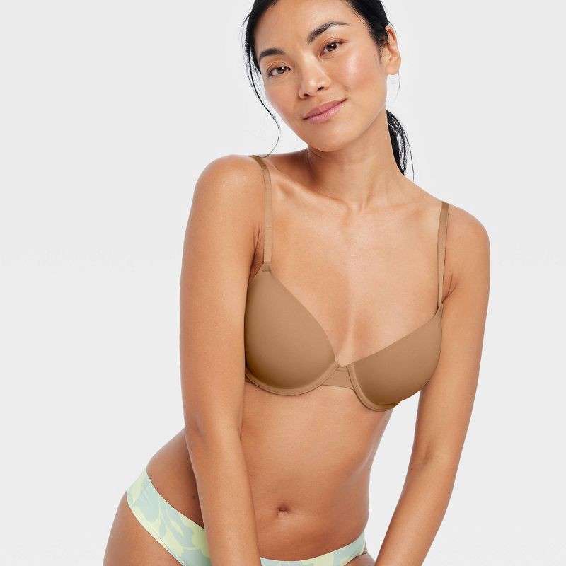 Women's Lightly Lined Demi T-Shirt Bra - Auden™ Caramel 32B: Underwire, Adjustable Straps