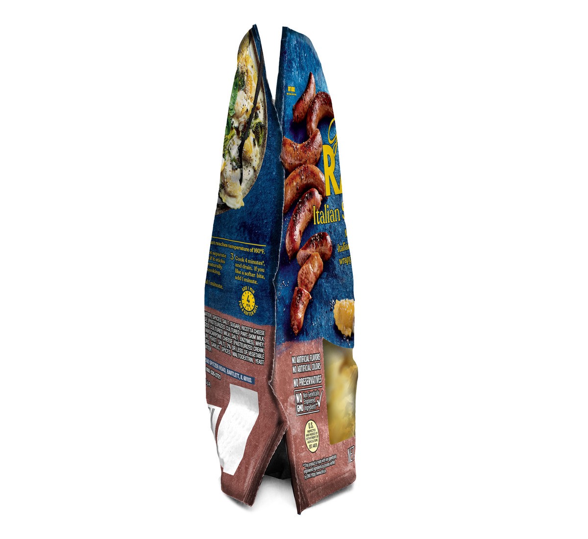 Italian Sausage Ravioli. Mildly seasoned Italian sausage and cheese wrapped in thin dough. Packed with 16 grams of protein per serving. Made with no artificial flavors, no artificial colors, no preser…