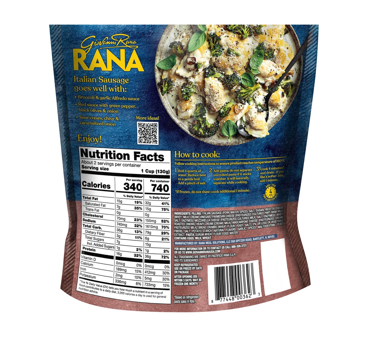 Italian Sausage Ravioli. Mildly seasoned Italian sausage and cheese wrapped in thin dough. Packed with 16 grams of protein per serving. Made with no artificial flavors, no artificial colors, no preser…