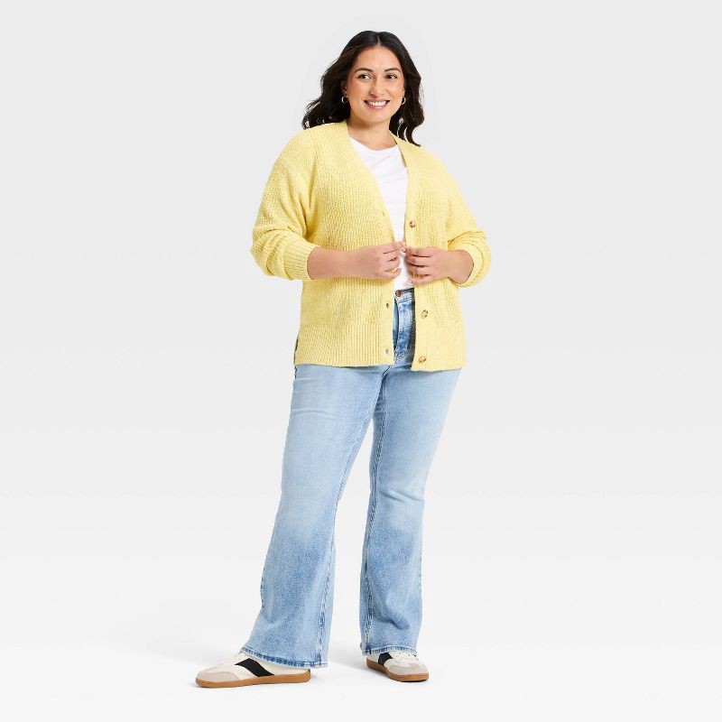 Women's Textured Stitch Button-Front Cardigan Sweater - Ava & Viv™ Yellow 1X
